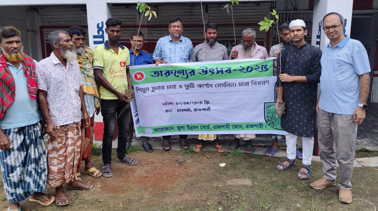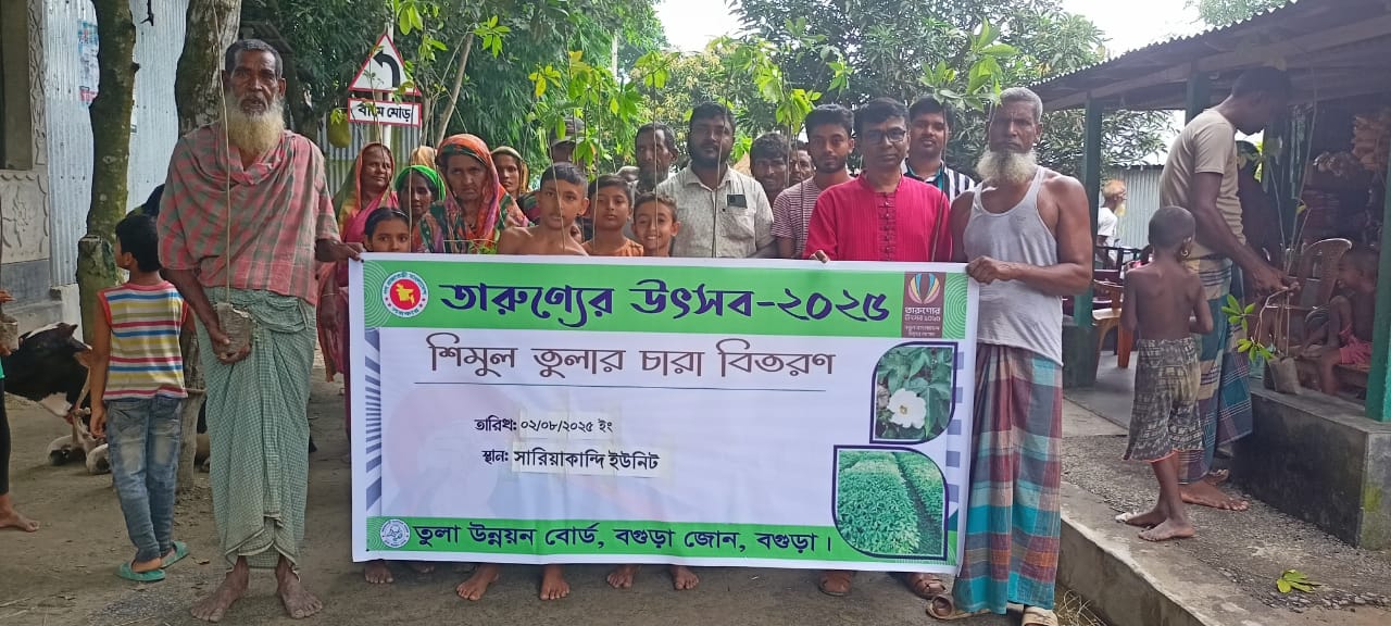 তারুণ্যের উৎসব,২০২৫ উদযাপনে তরুন তুলাচাষীদের মাঝে শিমুল চারা বিতরণ। সারিয়াকান্দি ইউনিট, বগুড়া জোন