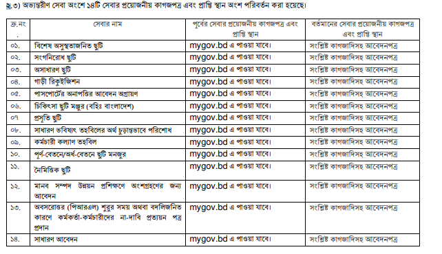 | ক্র: নং | পূর্বের সেবার নাম | বর্তমান সেবার নাম |